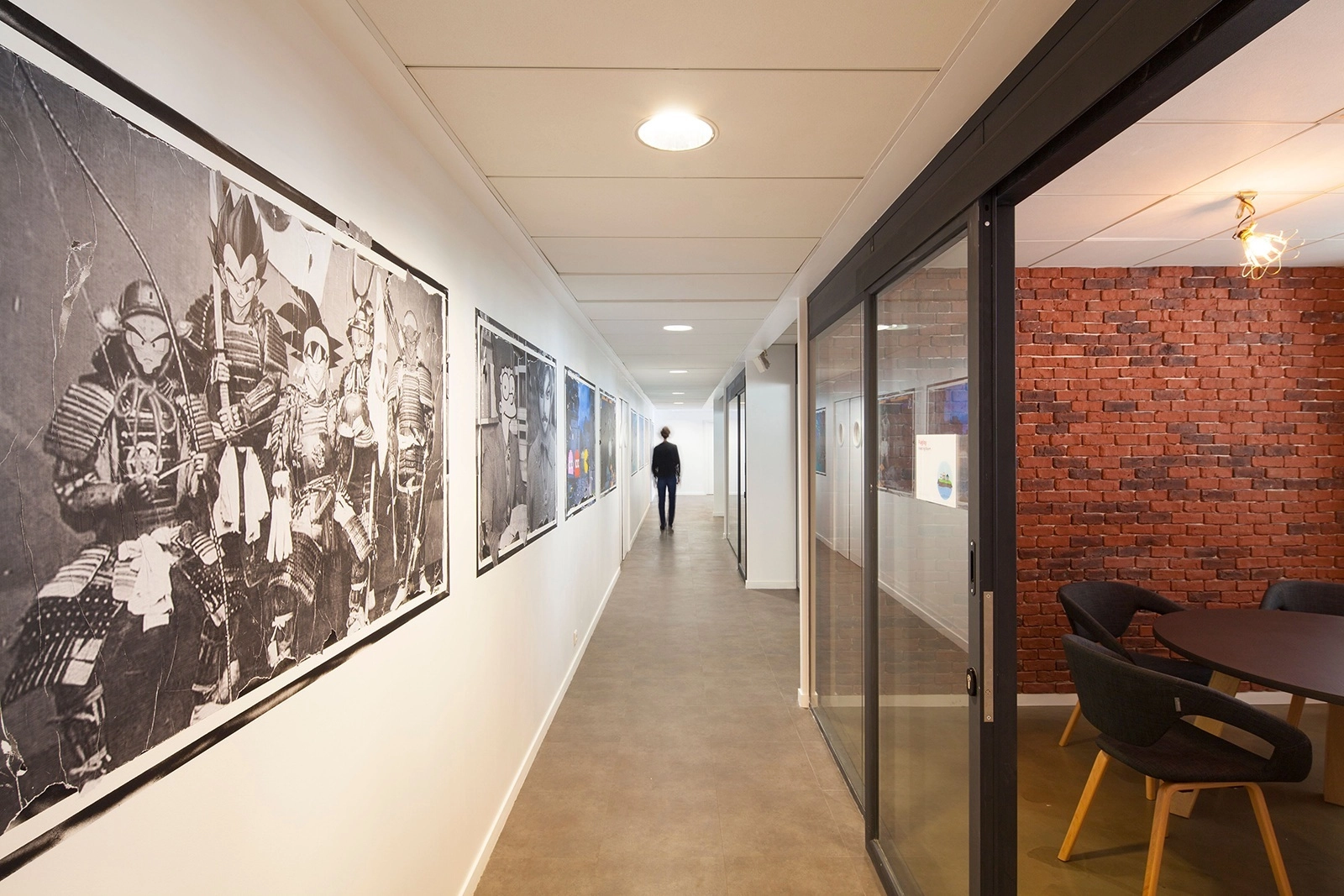 Notre mission a été d’inventer un lieu qui booste la créativité de l’équipe, le sentiment d’appartenance, et l’envie de travailler ensemble. Un grand nombre d’espaces collaboratifs sont créés : petites salles de réunion, box, salle de stand up meeting. Nous donnons (presque) carte blanche à cinq artistes de street art pour représenter le Puffin et son habitat. Tous les détails sont minutieusement préparé : la salle de sieste, la douche, la lecture dans les toilettes, l’ascenseur entièrement customisé où l’équipe continue de punaiser photos et messages… Mission accomplie en respectant un délai particulièrement court !